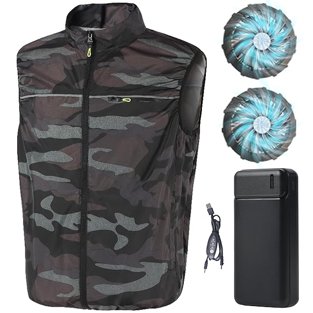 [inotenka] 2025暴風ファン & 体感-8℃ ファン付きベスト 空調作業服 M-6XL 大きいサイズ ファン付き作業服 大風量 3D循環送風 扇風機付きベスト 作業ベスト 3段階風量調節 超軽量 通気 UVカット 撥水加工 男女兼用 熱中症対策(XL 迷彩)