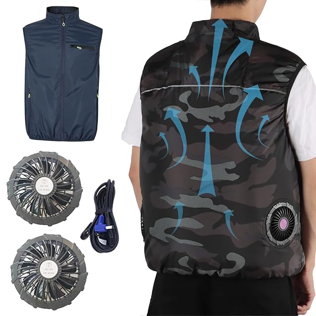 ✅【ファン付きベスト&ファンセット】最新型の品質と安全性が高い5Vファン。5500r/minの回転速度、使用環境により、最大限は7000r/minを達せるパワフルなモーターを採用して、空気力学の原理に基づいて、9枚の大面積羽根が均一に気流を割で、低騒音で風量UP!涼風を作ってくれます。風量が3段階と切り替えます。上質な高密度ABS素材、良質の純銅芯モーターを採用し、最新圧倒的な省エネ性能を実現しています。同類製品に比べると、電源が切れそう時、1Aの電力でも送風できます。USB型ファン:USB給電なので、専用バッテリーだけでなく、モバイルバッテリーも使用可能です。夏の幅広い現場作業において、疲労軽減、作業効率の向上、熱中症対策にも効果あります。
