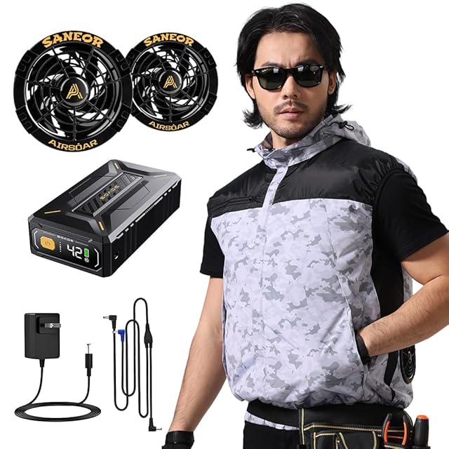 【幅広い用途&男女兼用&安心保証】厳しい暑さ、熱中症、エアコンに対応する作業着は、暑い、高温、過酷な地域、屋内外作業、レジャー、アウトドア、登山、釣り、アウトドアイベントなどの幅広い用途で使用されます。ウェアは現在最も流行している図案であり、男女とも着用できます。さらに、多サイズご用意ので、どんな体型でも正しいサイズでお使いいただけます。【セット内容】作業着 ベスト本体、40500mAhモバイルバッテリー、一体式急速充電器、バッテリー専用説明書、ファン、ファン専用ケーブル、ファン専用取扱説明書。※商品の品質には万全を期していますが、万が一商品に不具合がありましたら、ぜひお気軽にご連絡下さい。迅速に対応いたします。