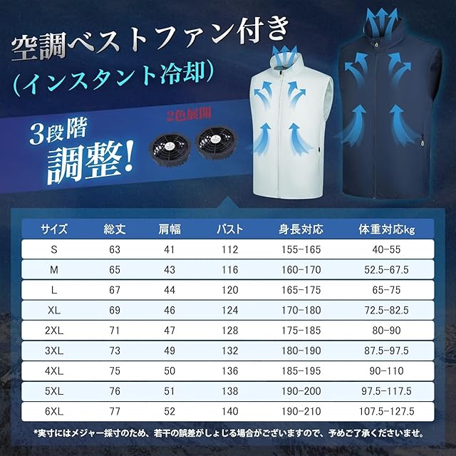 [inotenka] 2025暴風ファン&体感-8℃ファン付きベスト 空調作業服 大風量 瞬間冷却 3D循環送風 大きいサイズ 男女兼用 3段階風量調節 空調ウェア 作業ベスト ワークマン 通気 熱中症対策 超軽量 UVカット 撥水加工 (4XL バッテリー無し#ネイビー)