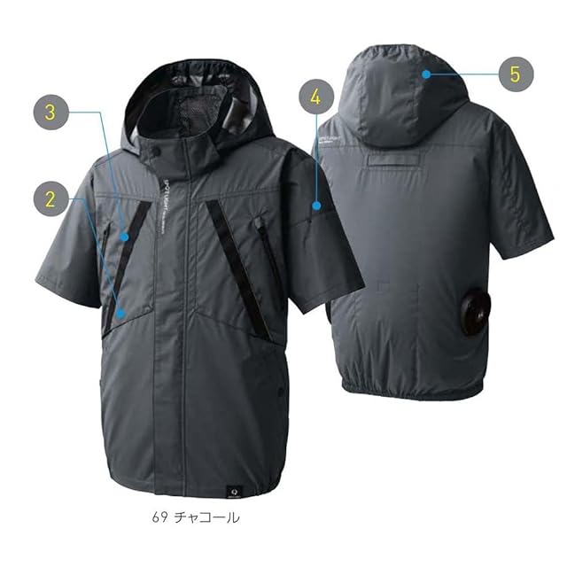 [サンエス] 空調風神服 チタン加工半袖ブルゾン 服のみ/オリジナルステッカー付【KF92430】 (3L, 69.チャコール)