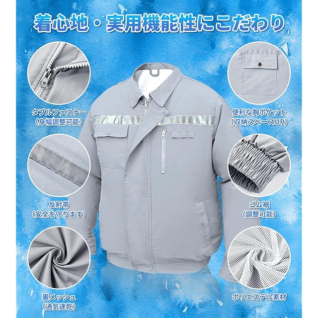 【猛暑への熱中症対策&幅広く活躍】ファンがウェアから突起しないフラット型なので、作業中の動作を防げず、快適な作業を実現し、カジュアルシーンでも作業シーンでも利用 頂けます。普通の工事現場、農作業、運送業などの作業着としてはもちろん、釣り、登山、ゴルフ、キャンプ、サイクリング、アウトドア活動などのレジャー 用の暑さ対策ウェアとしても活用できます。更に、長袖なので日のあたる場所で紫外線対策としても役立ちます。