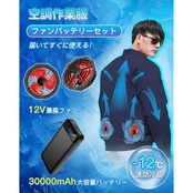 空調作業服 ファンバッテリーセット 12V高出力 30000mAh/111Wh大容量 ファン付き作業着 冷却服 3D循環送風 3段階風量調節 空調ウェア ワークマン 長袖 通気 サイズ調節可 UVカット 長時間稼働 熱中症対策 メンズ レディース