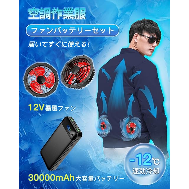 【2025夏新定番&空調作業服 ファンバッテリーセット】作業服*1、バッテリー*1、フアン*2、接続ケーブル*1、バッテリーへ充電用ケーブル*1。(本製品には30000mAh大容量モバイルバッテリーが含まれております。)弊社の空調作業服はダブルファスナーなので、普通のサイズより自由変換になり、Mサイズ対応S/M、Lサイズ対応L/XL、3XLサイズ対応2XL/3XL、4XLサイズ対応4XL/5XL。グレーとネイビー2つの色を展開します。または、作業服のファンは3枚の大面積羽根を採用して、風がより強くなるので快適に過ごせます。作業服ファンがウェアから突起することがないフラット型ので、作業中の動作を防げず、快適な作業を実現しました。