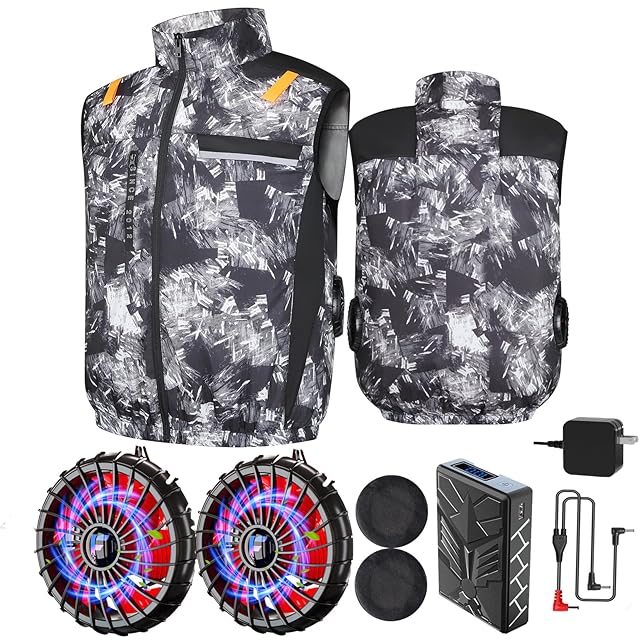 [風神マン] 50V 空調作業服ベストファンバッテリーセット超高出力ファン付きベスト日本製ブラシレスモーターBURTLE/バートルファンに完全対応マルチモード 3D曲面導流高性能 21700型 超高速充電熱中症対策暑さ対策空調作業着 UVカット PSE認証済 (JP, アルファベット, XL, 黒い迷彩)