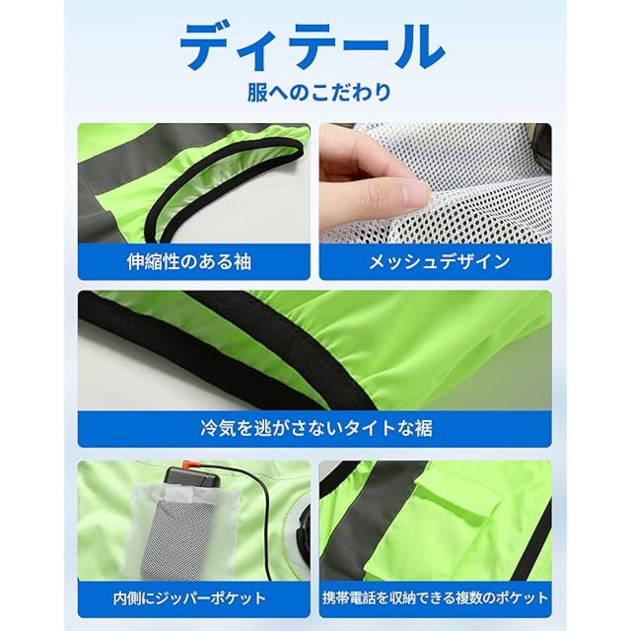 [CYCYHEAT] 空調作業服 ベスト 服のみ 9cm穴 互換性 ノースリーブ作業着 高視認 冷却ウェア ライトブルー 反射ベスト M グリーン