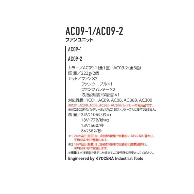 2025年製 AC09-1,AC09-2 ファンユニット使用可能な対応機種:AC09,AC08,AC360,AC300