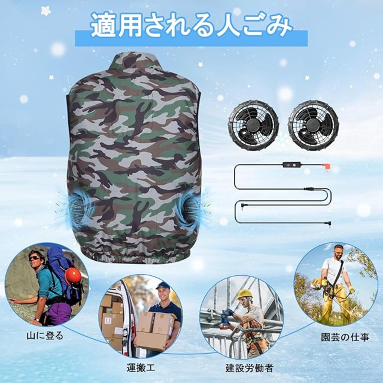 [Joyesplay] 空調作業服 ファン付きベスト 空調服 ベスト 3段階風量調節 最新 ファン付きウェア ファン付き作業着 空調作業服 大風量 循環送風 熱中症防止 軽量 通気 速乾 夏 暑さ対策 男女兼用 (JP, アルファベット, M, カモフラージ)