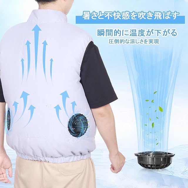 【男女兼用で簡単に使用】S、M、L、XL、2XL、3XL。豊富なサイズ展開のため男女兼用でお使いいただけます。サイズ表をご参考のうえご注文くださいませ。ファンのカバーは両手で簡単に取り外せるため、清掃も簡単で常に快適に使用できます。炎天下でも極上の涼しさを実現し、作業効率の向上と熱中症対策になります。