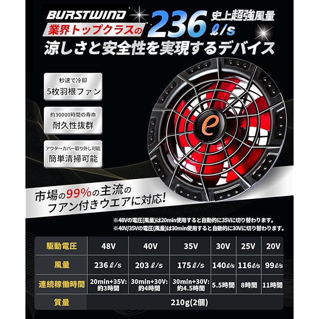 【業界唯一の使用機能互換デザイン】エレマイのバッテリーがファンとの組み合わせで圧倒的な風量を実現しながら、バィトル「Amazon Japanで販売中の人気ファンモデル(型番:AC09-1/AC09-2/AC08-1/AC08-2)に対応。」24V→18V→13V→10Vのワンボタン電圧切替機能で、異なる機種間でも最適な風量調整が可能。「専用バッテリーの持ち替え不要」という新常識を提案。互換性の限界を超えた次世代バッテリーで、作業効率と経済性を同時に最大化しましょう!
