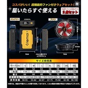 【ファン付き作業服】一番人気なファン付き作業服は今年真夏に初めて登場します。夏の猛暑時期に炎天下の現場でも楽しく作業できるファン付き作業服! ウェア、バッテリー、ファン、ACアダプターがすべて揃った作業服セット、シンプルな着用を行うだけで、体をすぐ楽々に!生地裏に高密度コットンプロードを施すことによって、紫外線を防ぐUVカット素材を使用、紫外線によるダメージの99%を防ぎ、暑さの根源を徹底的に遮断、圧倒的な涼しさを実現!通常素材作業服より平均15℃温度を下げる効果を実現しました。新型のデザインにより、首元までしっかりと風が通り、服の中を通った暖かく湿った空気は袖ロと襟元から排出、ファン付き作業服の性能を最大限発揮できます。保冷剤パック用のポケットを全仕様で標準装備!利用して更に体を冷やすことができます。作業中の体温上昇を抑える効果があります。