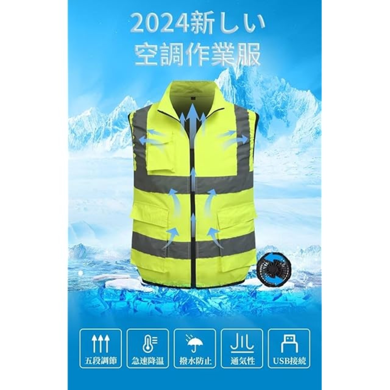 【セット内容】作業ベスト*1、フアン*2、接続ケーブル*1。(本製品にはモバイルバッテリー、氷嚢なし。)服には反射条が付いているので、ナイトワークも全然OK!