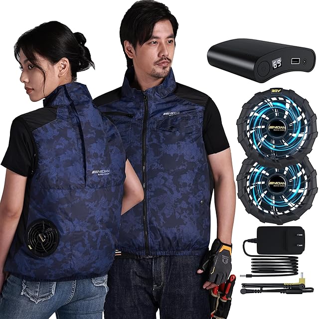 [MIDIAN] 空調作業服【2024新登場 業界最強30V超高出力 138L/S爆風】 ファン付きベスト ファンバッテリーセット フルハーネス安全帯対応 20000mAh大容量 5段階調節ファン付き作業着 PSE認証済 熱中症対策 夏用空調冷感服