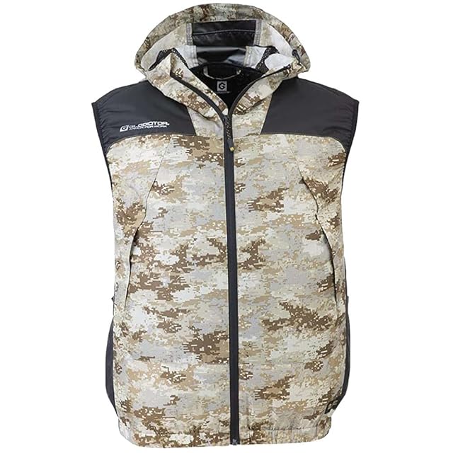 [Cooling Wear] コーコス (G-7719) 空調風神服 ボルトクール 日傘遮熱 フーディーベスト 服のみ/オリジナルステッカー付 (L, 64.デジカーキ)