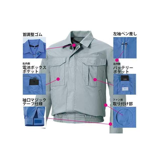 [Cooling Wear] SUN-S(サンエス) 空調風神服 長袖ブルゾン【KU90550】 綿100% 服のみ (ライトブルー, M)