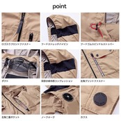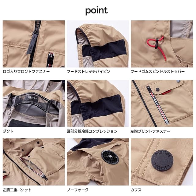 村上被服 HOOH 2025年 ミドルファン フード ベスト 空調ウェア 裏チタンコーティング 撥水 UVカット 消臭 V1129 (38.カーキ, 10L)