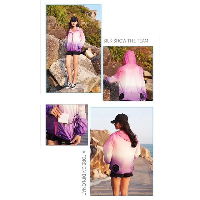 [Quntum A.E] 扇風服 レディース 長袖 ファン付きジャケット フード付き ヤッケ ウィンドブレーカー メンズ 空冷服 軽い撥水 UVカット 熱中症対策 暑さ対策 風神服 USB給電 薄手 軽量 夏(3XL ピンク)