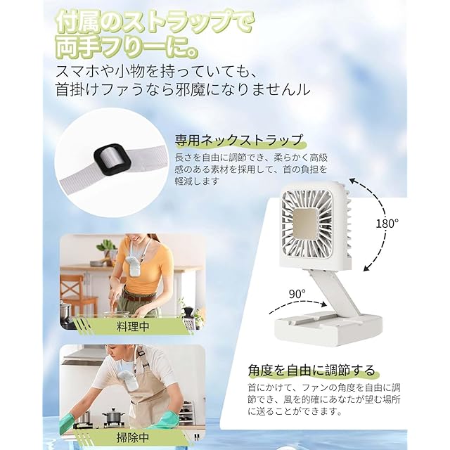 【多様性・モバイルバッテリー機能搭載】便利性と多様なシーンの適応性を十分に考慮しており、手に持ってどこでもすぐに涼しさを楽しめることができます。机の上に置いて、付属のネックストラップを取り付けることで「首掛け扇風機」になります。ネックストラップは長さ調節が可能です。外出、オフィス、自宅など、どんなシーンでも簡単に適応できます。また、長時間のお出かけ時も安心して持ち歩くことができるモバイルバッテリー機能を搭載したスマートハンディファン!内蔵するリチウムイオン電池の容量は6000mAhで、満充電時にはスマートフォンであればフル1充電でき、緊急時に役立ちます。