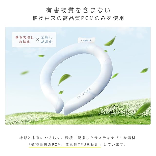 【室温28度以下で自然に冷凍、冷蔵庫は不要】当社のアイスクールリングは、NASAが開発した最先端のpcm素材を使用しています。この素材は、迅速に固まり、ゆっくりと溶ける特性を持ち、夏の暑さ対策に最適です。このアイスネックリングは、室温が28度以下になると自然に凍結するため、冷蔵庫に入れる必要はありません。溶けだしたあとにすぐにご使用いただく場合は、冷蔵庫に入れたり、水道水に浸していただきますと凍結します。突然の外出時にも対応可能で、便利で環境に優しい製品です。