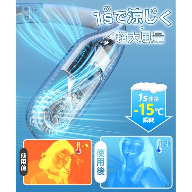 【1秒冷感&3段階風量調節】ボタンを押すだけで 1秒冷感 を体感!風量は 自然風・弱風・強風 の 3段階調整 が可能で、シーンに合わせた快適な風を選択可能。暑い日差しの下では強風モード、自宅やオフィスでは自然風モードでリラックスしながら使用できます。さらに 充電式扇風機 のため、どこでも手軽に涼しさを確保!