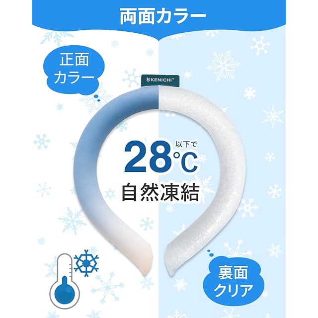 冷蔵庫や冷水で10数分間冷やしてから首に巻くと28度前後のひんやりとした感触が持続する。 0度以下になる保冷剤とは異なり、体を冷やしすぎず、結露しないので服が濡れる心配もない。 内部の素材が溶けて液体になったら、冷やして繰り返し使えるのも特徴です。