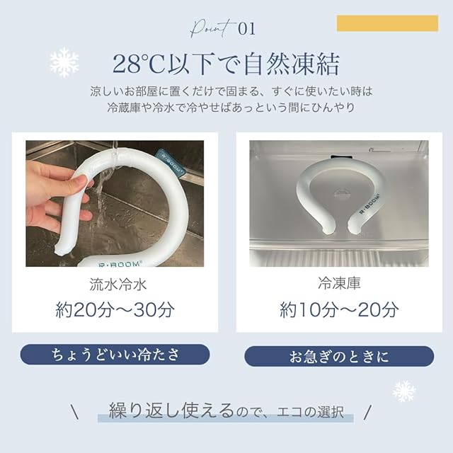 【2025年最新開発したPCM】:アイスネックリング持続時間を最大し、ひんやり感が今までの倍以上になります。クールネックリングは28℃以下で自然に凍結し、屋外屋内どこでも繰り返しお使いいただけるアイテムです。優れたPCM素材を使用しているので、安心して使用できますし、繰り返しお使いいただけます。