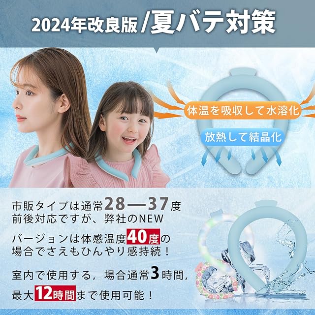 アイスネックリング クールネック ネッククーラー 28℃で自然凍結 冷却リング キッズ 大人 首 冷たい 冷感リング 涼しい 長持ち 繰り返し使用 ひんやりグッズ 冷感 結露しない 首元冷却 熱中症対策 暑さ対策 冷たい ひんやり [日本文化用品安全検査所検査済] (M, さくらんば(MA))(女性/子供用)