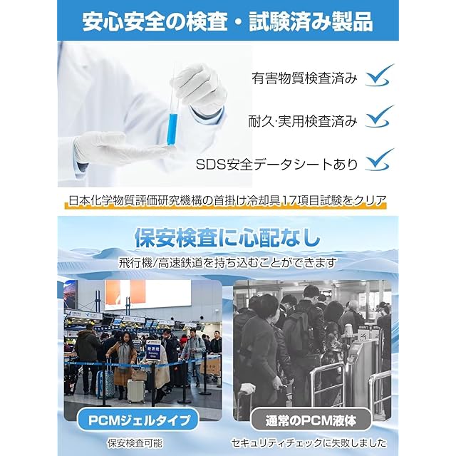【2024年最新開発したPCMジェル &ひんやり持続の秘密】この クールネックリングは最先端素材の「PCMジェル素材」を使用、一般的な物質は周囲の湿度が上昇すると共に上昇しますが、PCMは周囲の温度が上昇しても一定の温度警で止まり、熱を吸収して一定温度を維持します。アイスネックリング持続時間を最大し、ひんやり感が今までの倍以上になります。凍結は28°C未満のどこからでも始まります。すばやく体温調節ができ、無理なくクールダウンできます。このアイスネックリングはひんやり感が長時間持続し、夏の間ずっとお使いいただけます。