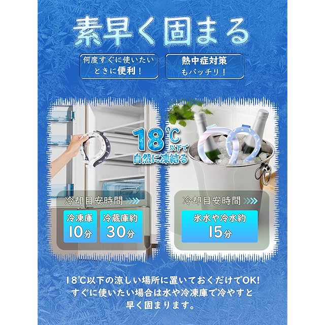 【18度以下の環境で自然に凍結】 首元を冷やして熱中症対策に!冷蔵庫・冷凍庫または18度以下の冷水・氷水に晒すことで再度凍結し、ひんやりが復活します。 結露せずさらさら、保冷剤·氷などと違って結露しないため水が垂れてペットの毛が濡れることなく快適にお使いいただけます。