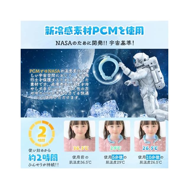 暑い真夏の季節でもネックリングは首ひんやりグッズ!24度以下の空間で凍る特殊な氷「PCM素材」で作られた首元用のネッククーラー。