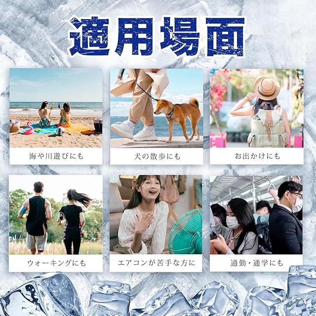 首元にフィットして落ちにくいデザイン。スポーツでアクティブに動く方や屋外で作業をする方、通勤・通学時、釣りをする方、家事をする方、ホットフラッシュが気になる方、クーラーのない空間での活動、お風呂上がりや気分転換など様々なシーンでお使いいただけます。