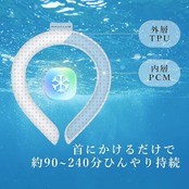 【特徴】【1】28℃以下で自然凍結! 28℃以下で凍る水溶化ジェル「PCM」を丈夫なTPU素材で包んだ首元用ネックリング 【2】結露しないから快適 氷などと違い結露しないので、首元が濡れることなく、いつでもサラサラで快適です 【3】適度な冷却が持続 28℃を維持し、過度な冷却を防いで身体の熱を吸収し、心地よくクールダウン 【4】何度でも繰り返し使える 28℃以上になると液体化し、28℃以下になると凍るため、冷やせば繰り返し使えます 【5】電源や電池も不要 電源や電池が不要なため、経済的でエコな熱中対策商品。