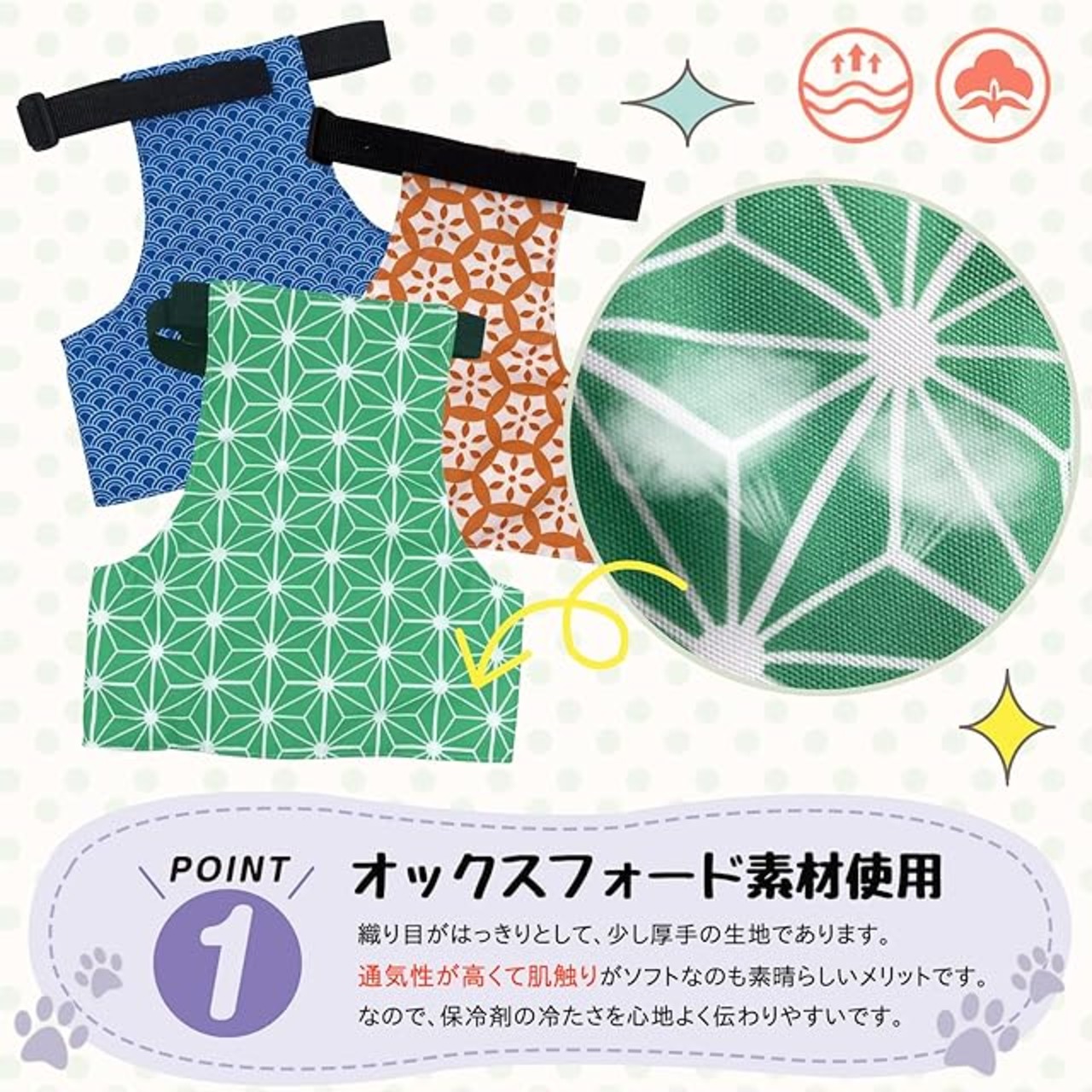 犬クールベスト 国産保冷剤付き ひんやりベスト 暑さ対策 熱中症対策 犬用猫用 夏服クール ドッグウエア 冷却ベスト (M, 亀甲丸-ベスト)