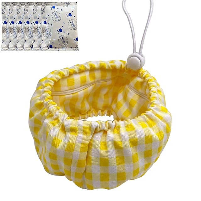 犬クールネック 国産保冷剤付き クールバンド 暑さ対策 熱中症対策 犬用猫用 首ひんやり 首冷 ネッククーラー (L, チエック-イエロー)