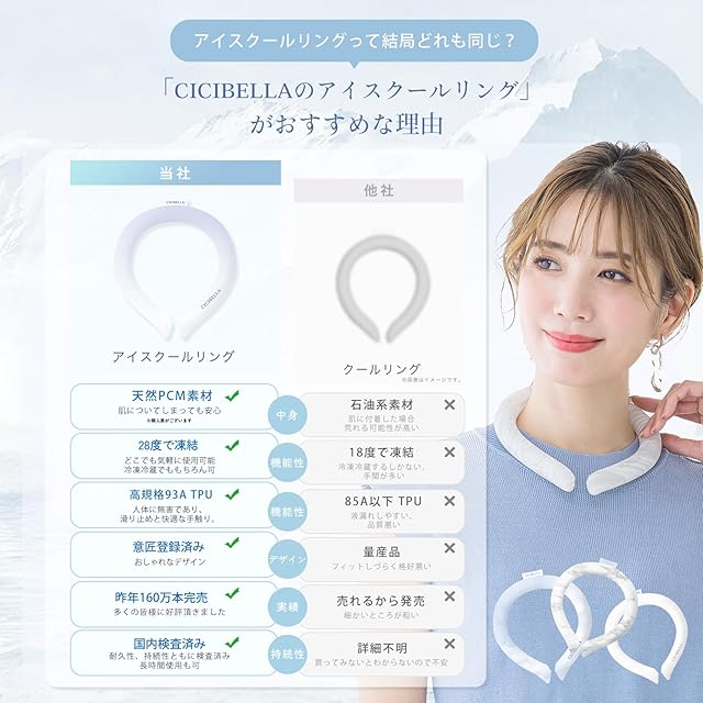 【植物由来PCM採用】当社のアイスクールリングは「PCM」という「熱を吸収・発散」する素材を採用しており、一定的温度を保つ性質のある製品となっております。その為、冷え過ぎ防止にもなり、安心してご使用いただくことができます。