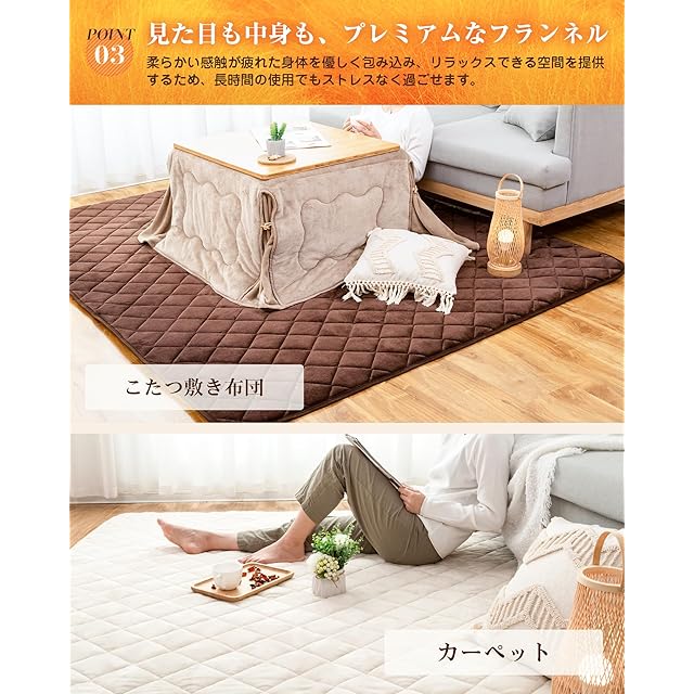 【ずっと暖かさの秘密】こたつ敷き布団は固綿入りの4層構造です。厚さ約10mmウレタン入りて、しっかりと保温。