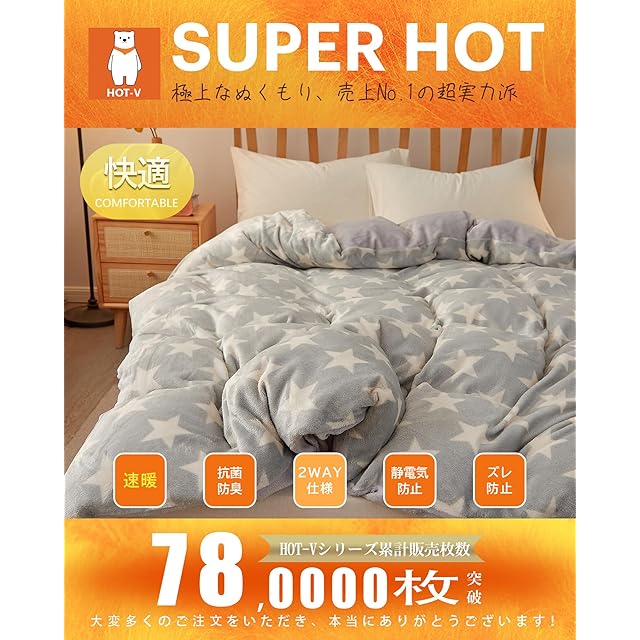 【HOT-Vシリーズ】人気のHOT-Vシリーズ、今年で6周年!5年連続こたつ布団第1位、敷きパッド第1位、掛け布団第1位、2年連続こたつマット第1位、こたつ布団セット第1位、5冠達成!合計78萬枚突破!大変多くのご注文をいただき、本当にありがとうございます。