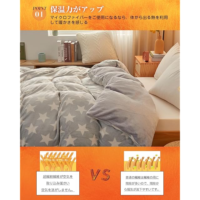 【柔らかくて暖かい】寒い季節は布団が冷たくて、入る瞬間が嫌ですね。冬に欠かせないマイクロファイバーをご使用になるなら、体から出る熱を利用して保温力がアップ。軽量なので、身体への負担も少ないです。お布団に入ったときの冷たさを軽減し、快適に休みます。