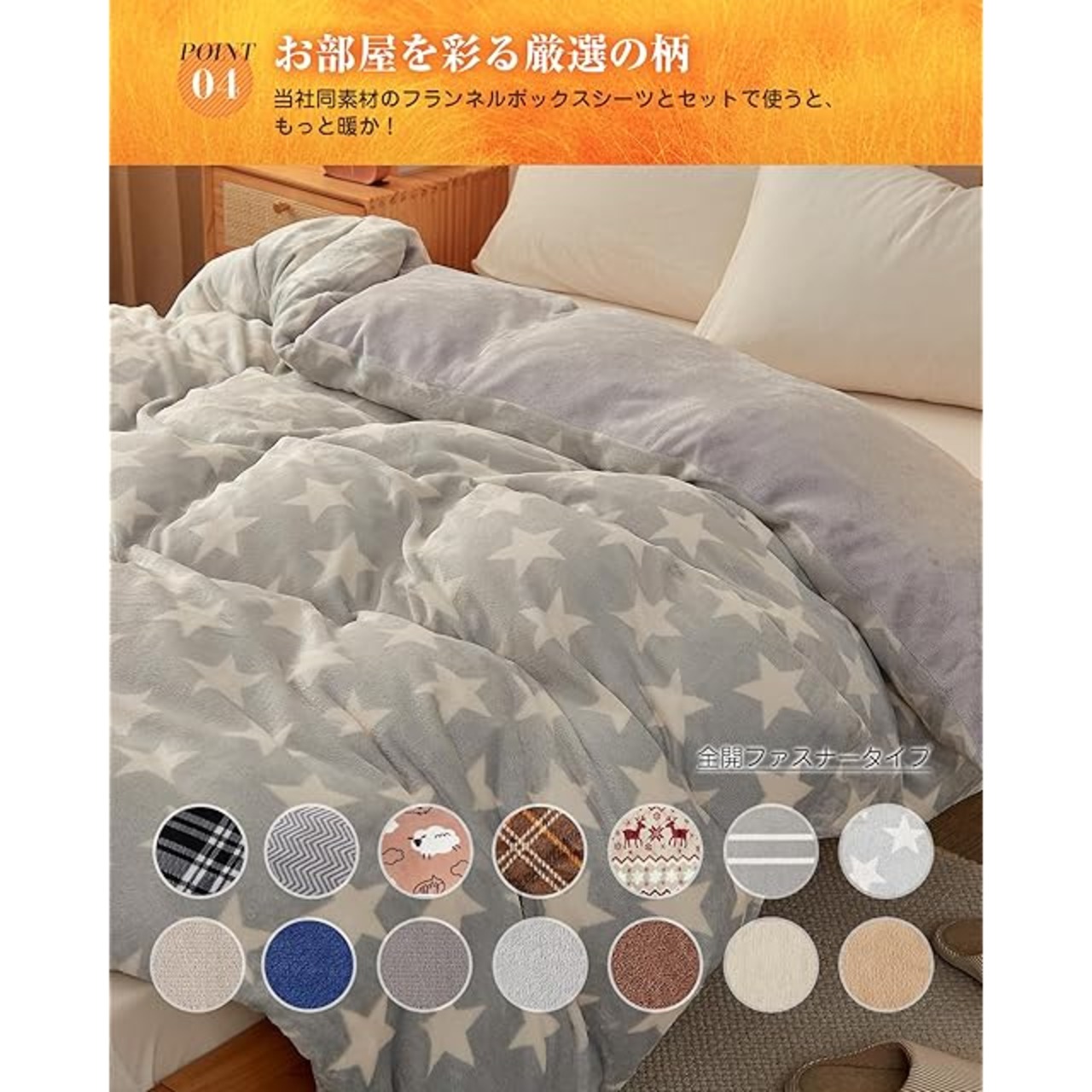 VK Living 掛け布団カバー 冬 シングル あったか フランネル 布団カバー 【SUPER HOT】毛布にもなる2WAY仕様 抗菌防臭 掛けカバー 全開ファスナー 8ヶ所ループ付き 150×210cm スター柄・グレー