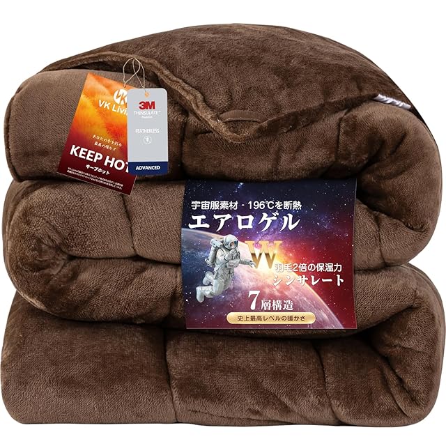VK Living 掛け布団 【シンサレート+宇宙服断熱素材エアロゲル】 シングル 【KEEP HOT】 7層構造 TEIJIN抗菌防臭 羽毛より暖かい 速暖 発熱保温 洗える 毛抜けない 静電気防止 ほこりが出にくい 150x210 ブラウン