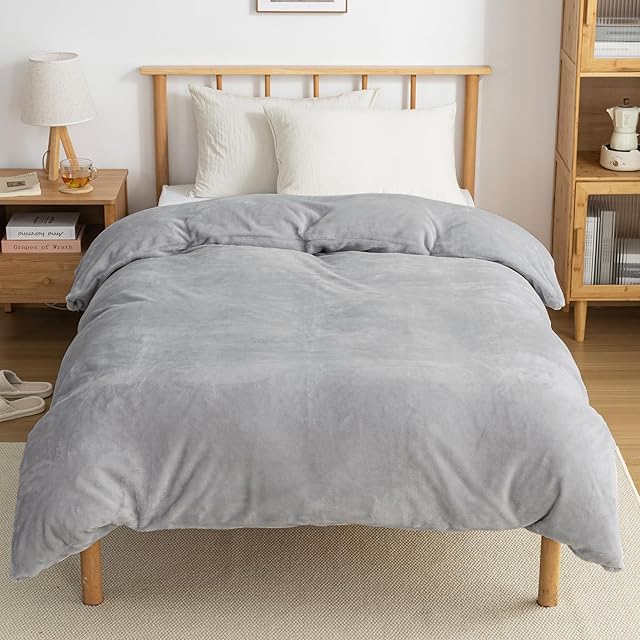 VK Living 掛け布団カバー 冬 シングル あったか フランネル 布団カバー 【SUPER HOT】毛布にもなる2WAY仕様 抗菌防臭 掛けカバー 全開ファスナー 8ヶ所ループ付き 150×210cm グレー