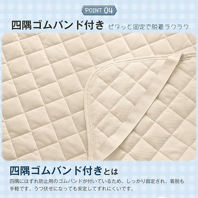 【簡単なお手入れ・丸洗いOK】四隅強化ゴムバンドでズレ防止&着脱ラクラク。ご家庭の洗濯機で丸洗いが可能で、いつでも清潔な状態を保つことができます。