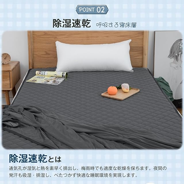 【呼吸する寝床層:除湿速乾】細かい通気孔が無数のガードマンのように、湿気と熱を素早く排出し、マット表面を乾燥快適に保ちます。夜中に汗をかいても、すぐに吸湿・排湿し、べたつき感から解放され、乾燥した睡眠環境を実現します。