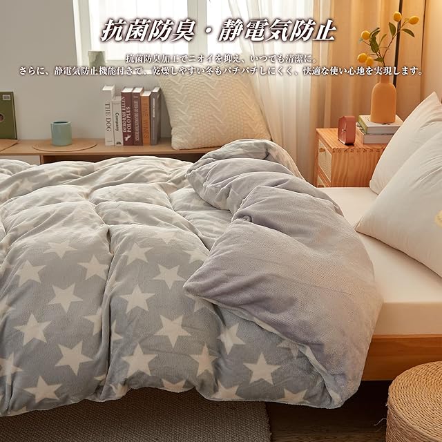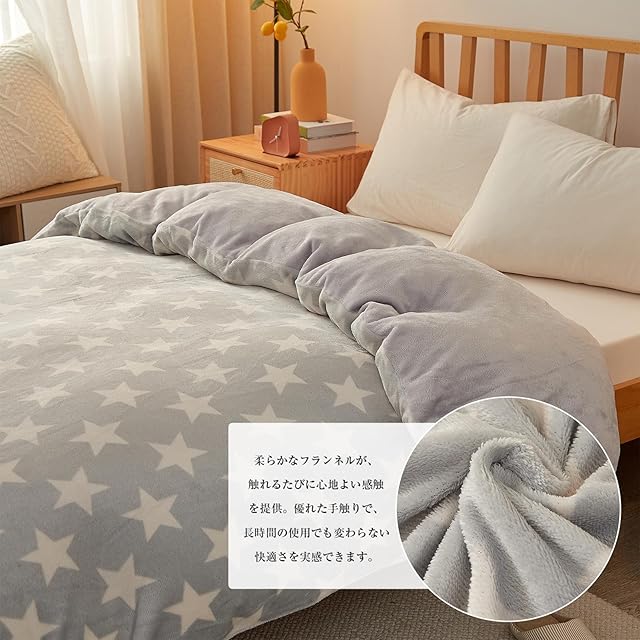 VK Living 掛け布団カバー 掛けカバー 冬 シングル フランネル 毛布にもなる2WAY仕様 抗菌防臭 150×210cm スター柄・グレー
