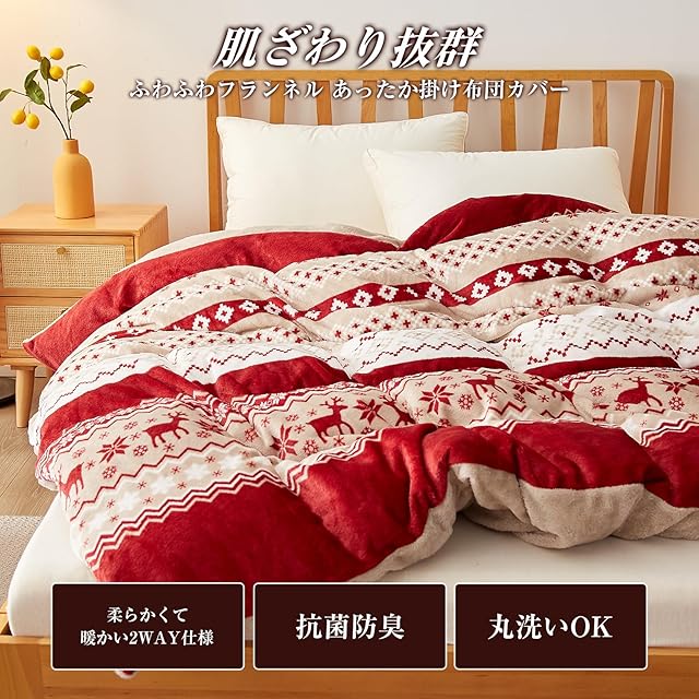 VK Living 掛け布団カバー 掛けカバー 冬 シングル フランネル 毛布にもなる2WAY仕様 抗菌防臭 170×210cm 鹿柄・レッド