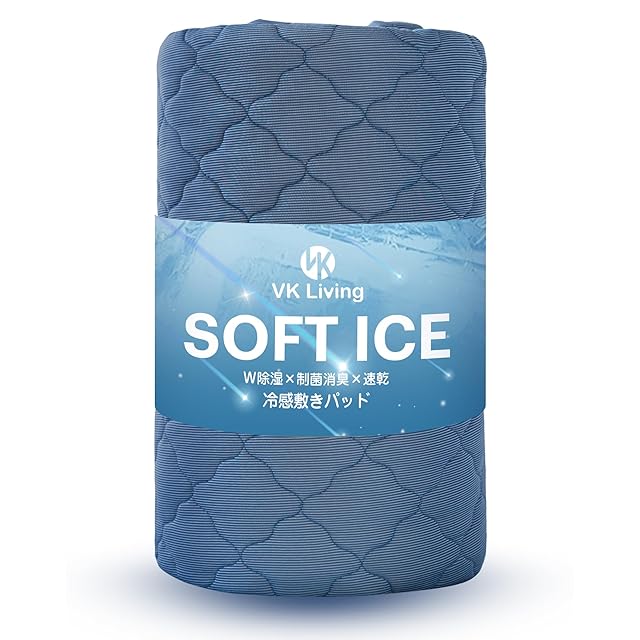 VK Living 敷きパッド セミダブル 冷感 【SOFT ICE】 しきぱっと 夏用 シーツ ひんやり 【TEIJIN マイティトップ中綿使用】 ベッドパッド 24時間持続制菌消臭 敷パッド オールシーズン 二重除湿速乾 洗える 防ダニ 抗菌防臭 120x205cm ネイビー