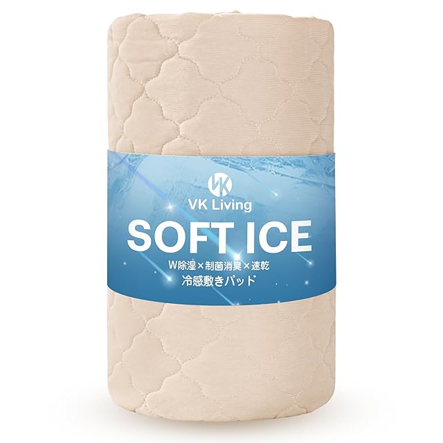 VK Living 敷きパッド セミダブル 冷感 【SOFT ICE】 しきぱっと 夏用 シーツ ひんやり 【TEIJIN マイティトップ中綿使用】 ベッドパッド 24時間持続制菌消臭 敷パッド オールシーズン 二重除湿速乾 洗える 防ダニ 抗菌防臭 120x205cm ベージュ