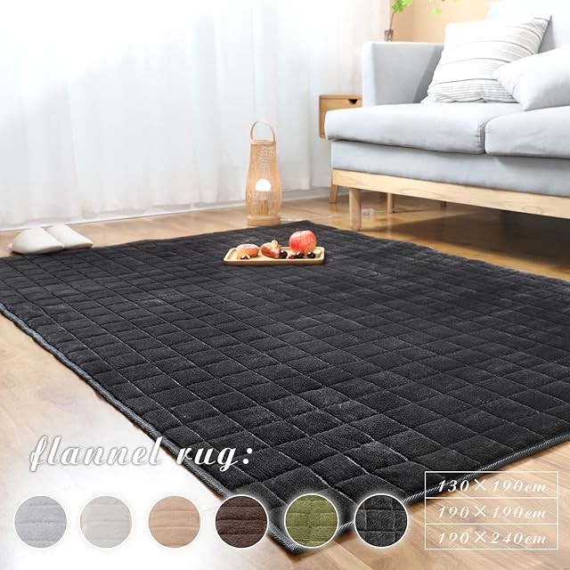 VK Living カーペット キルトラグ ラグマット 絨毯 ラグ 130×190cm(約1.5畳) 洗える 滑り止め付 防ダニ 抗菌 防臭 1年中使えるタイプ 床暖房 ホットカーペット対応 フランネルラグ ダークグレー VKJ043
