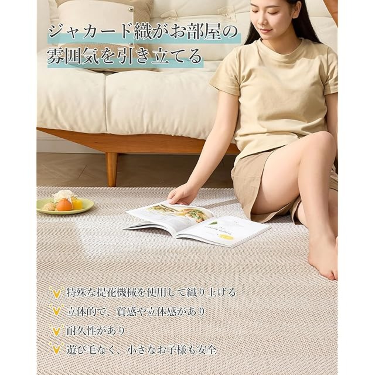 【安全仕様!お子様にも安心なカーペット】浮き毛のない編み込みカーペット、裏面には滑り止め加工をした不織布を使用して、防臭・防ダニ加工を施し、消臭率とホルム検査合格し、お子様にも安心してお使いいただけます!