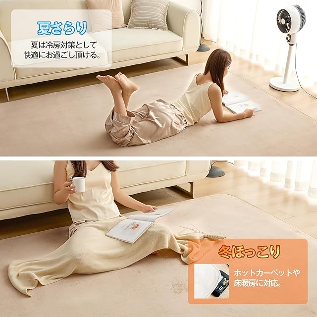 【暖房屋・ホットカーペット対応】耐熱加工を施しているので、ホットカーペットや床暖房の上に敷いてもお使いいただけます。こたつの敷布団としても併用可能!ふわふわと暖かく、更に居心地が良くなり離れたくなくなることでしょう。底冷えする冬は、足元からぽかぽか。敷くだけでも暖かさを感じます。他社の同じ値段の絨毯と比べ暖かさと肌触りが段違いです、他社比でも2倍長持ち、経済的にもおすすめです。